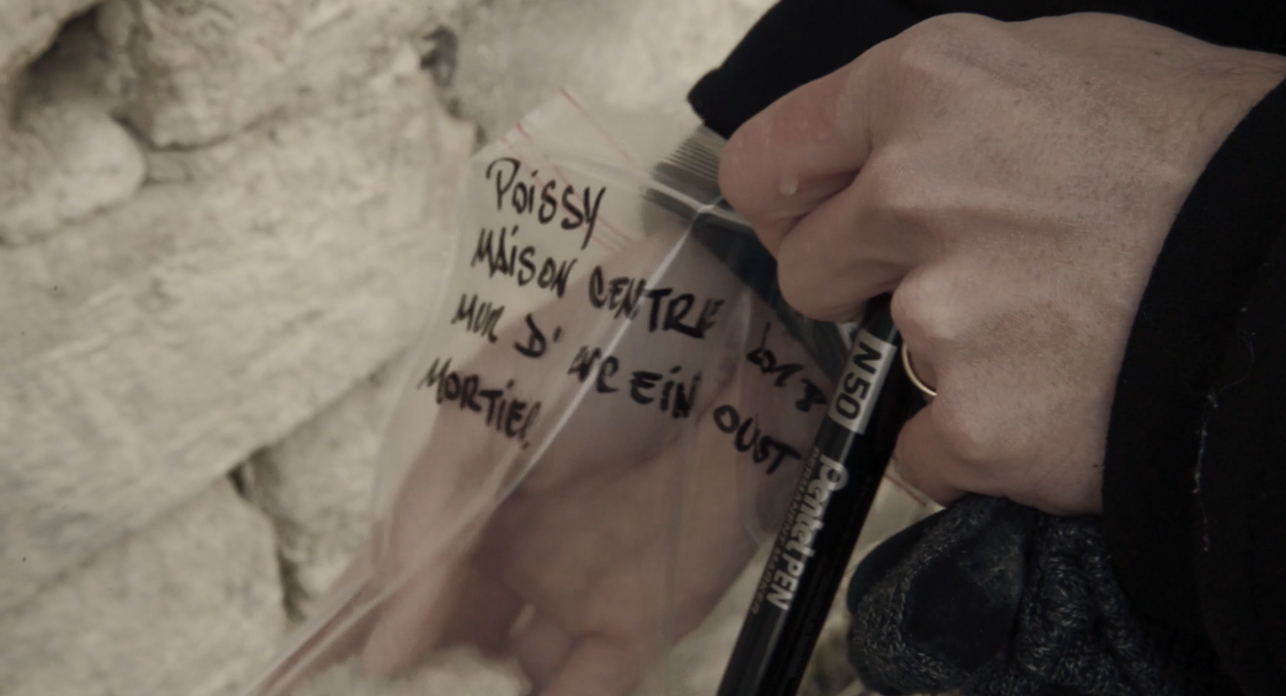 Once the cards developed, the working group addresses the circulation of its stories outside the walls. Gauche volunteers as spokesperson: she is thus invited, at the end of her sentence, to perform in front of the camera. She re-interprets the diary she wrote daily in her cell, the texts collectively written in the workshop, the administrative documents that governed her days, testifying for the gender-based violence of French prisons.